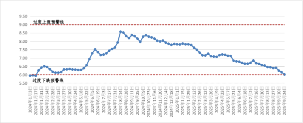 1-9月份,我区猪粮比价在合理区间小幅波动下行。1月份,我区生猪出场价格和玉米价格均小幅下降,猪粮比价稳定在7.801附近微幅波动;2-9月份,生猪出场价格波动下降、玉米价格低位小幅回升,猪粮比价波动下行,截至924日,全区猪粮比价为6.02:1,接近61的过度下跌三级预警临界值