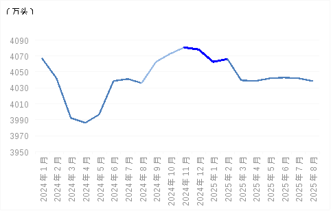 供给方面,今年以来生猪市场供应充足,且基本呈环比增长态势,截至9月末,国内生猪存栏量为43680万头,较年初增长2.19%。按照生猪生长周期推算,四季度生猪出栏对应前10个月能繁母猪存栏情况,即202412月至20252月能繁母猪存栏量。据农业农村部数据显示,这一时期能繁母猪存栏量处于相对高位,维持在4060万头以上,理论上今年四季度生猪出栏量较高。为稳定生猪市场价格,相关部门采取组织养殖户有序减产、控制出栏体重、规范二次育肥等组合措施,将有效缓解生猪市场供应压力。调查了解到,8月份规模养殖场和小型养殖场能繁母猪淘汰量均高于去年同期。