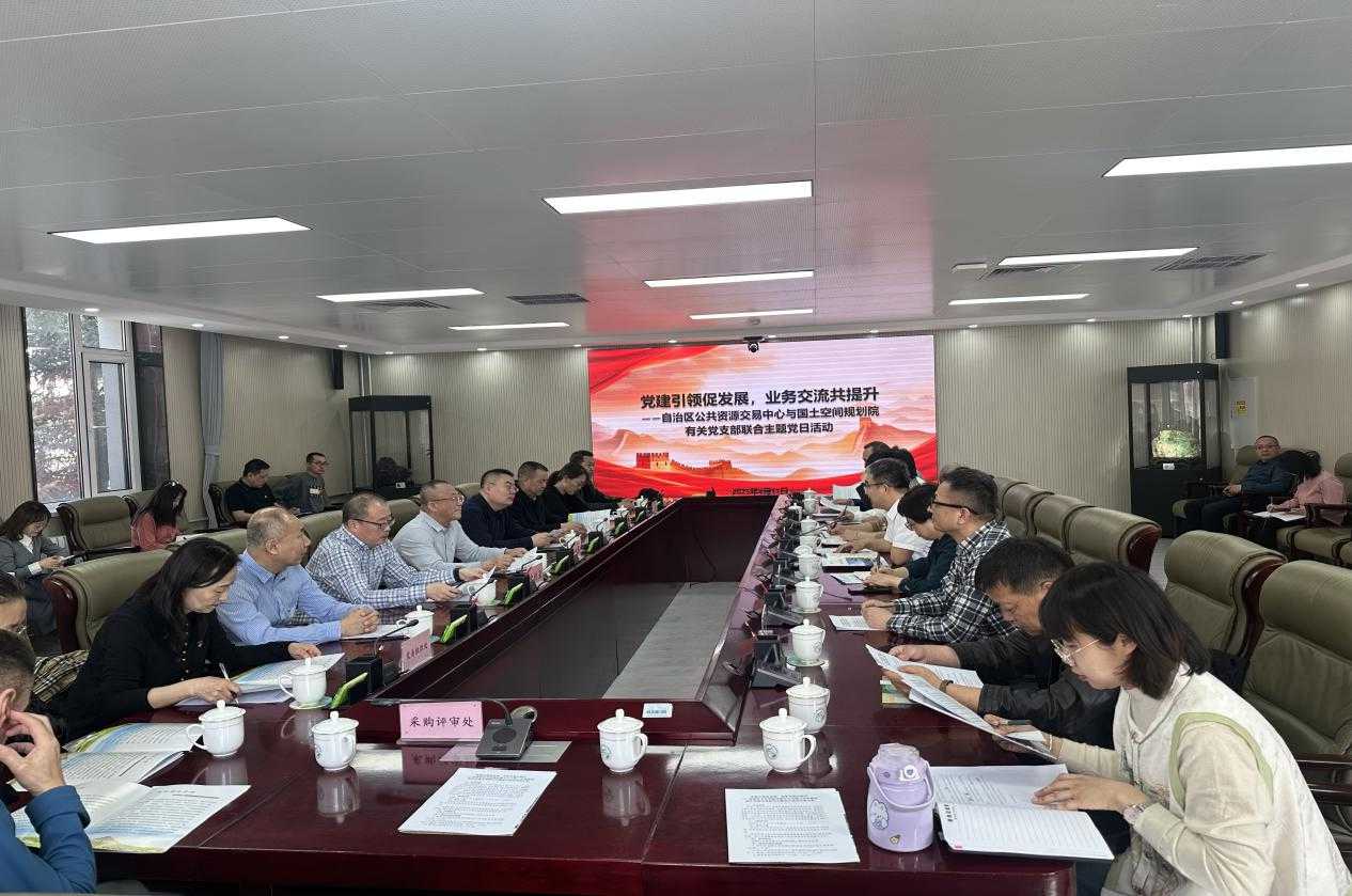 为扎实开展深入贯彻中央八项规定精神学习教育,推动党建与业务深度融合,共同增强干部队伍政治意识和服务意识,提升业务能力,近日自治区公共资源交易中心与自治区国土空间规划院联合开展“党建引领促发展,业务交流共提升”主题党日活动。
