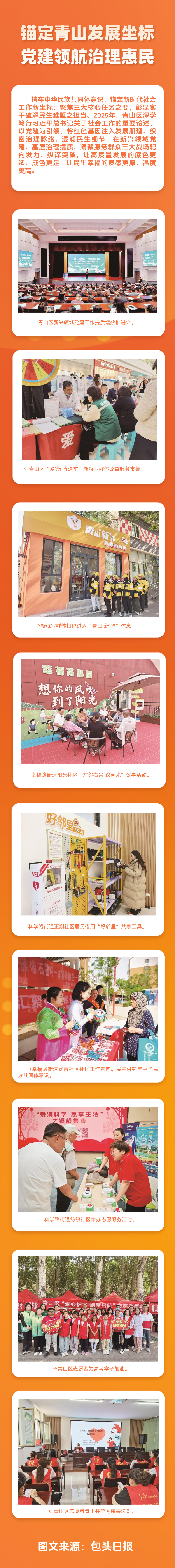 铸牢中华民族共同体意识,锚定新时代社会工作新坐标;聚焦三大核心任务之要,彰显实干破解民生难题之担当。2025年,青山区深学笃行习近平总书记关于社会工作的重要论述,以党建为引领,将红色基因注入发展肌理、织密治理脉络、浸润民生细节,在新兴领域党建、基层治理提质、凝聚服务群众三大战场靶向发力、纵深突破,让高质量发展的底色更浓、成色更足,让民生幸福的质感更厚、温度更高。