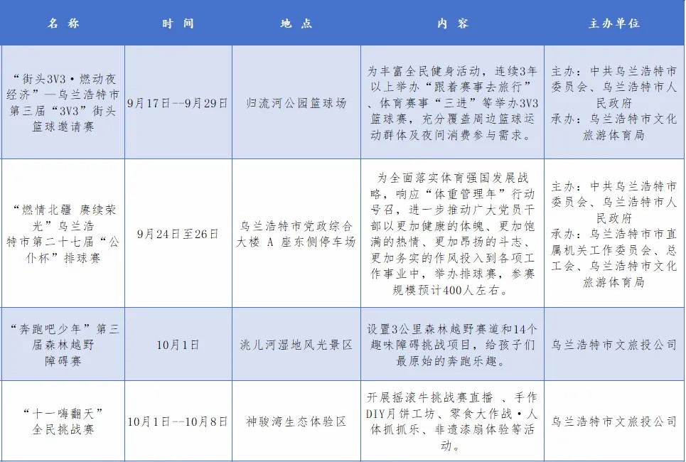 脚步丈量诗与远方,心动就在乌兰浩特!这个假期,让我们相约乌兰浩特,共赴秋日之约,留下属于您的独特记忆。精彩活动不间断,暖心服务不停歇——我们已准备好迎接您的到来!赶紧收藏这份活动清单,转发给身边的小伙伴,十月乌兰浩特,不见不散!
