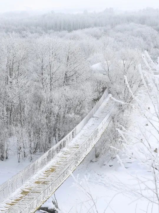 雪原雾凇中的大片树林,傲然挺立,气势震撼。景区门票有优惠,还可体验生态体验馆内(VR、神笔马良、沉浸式环幕影院),星空馆住宿、围炉煮茶、夜晚烟花秀。