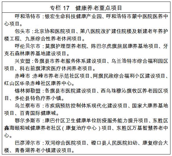 (二)优化呼包鄂乌服务业布局。呼和浩特市重点发展现代物流、信息服务、现代金融、科技服务、商务会展等生产性服务业和现代商贸、文化旅游、健康养老、社区服务等生活性服务业,加快创新数字经济、网红经济、平台经济等服务业新业态新模式,向外辐射周边地区,激发首府经济发展动力、潜力与活力,形成现代产业、现代城市、现代生活三位一体协调发展的标杆和示范城市。包头市重点围绕“区域性经济中心城市”建设,着力打造区域性服务业中心、创新中心和全国商贸物流节点城市,重点推动现代物流、现代金融、电子商务、科技创新、信息技术、研发设计、商务会展等生产性服务业迭代升级,建设祖国北疆具有辐射带动能力的生产性服务业发展示范城市;大力发展文化旅游、教育培训、健康养老、家庭服务、医养结合、体育健身等生活性服务业,建成我国西部地区具有区域影响力的消费升级样板城市。鄂尔多斯市重点围绕国家全域旅游示范区、国家旅游休闲城市、国家文化和旅游消费示范城市及国家物流枢纽布局承载城市建设,着力打造区域性消费中心,加快发展现代物流、金融服务、电子商务、职业培训、商务会展等生产性服务业,大力发展文化旅游、商贸服务、健康养老等生活性服务业,创新发展平台经济、体验经济、夜间经济、绿色消费等新兴消费服务业,推动服务型制造业创新发展,以5G、大数据、人工智能等新一代信息技术在服务领域的深度应用为引领,加快打造黄河“几”字弯都市圈服务中心城市。乌兰察布市重点围绕“旅游康养休闲度假知名目的地、绿色数据中心、国家物流枢纽”建设,积极发展全域旅游产业、大物流产业、现代商贸流通产业、家政养老服务产业、商务服务产业,大力推动绿色经济、数字经济、枢纽经济联动发展。
