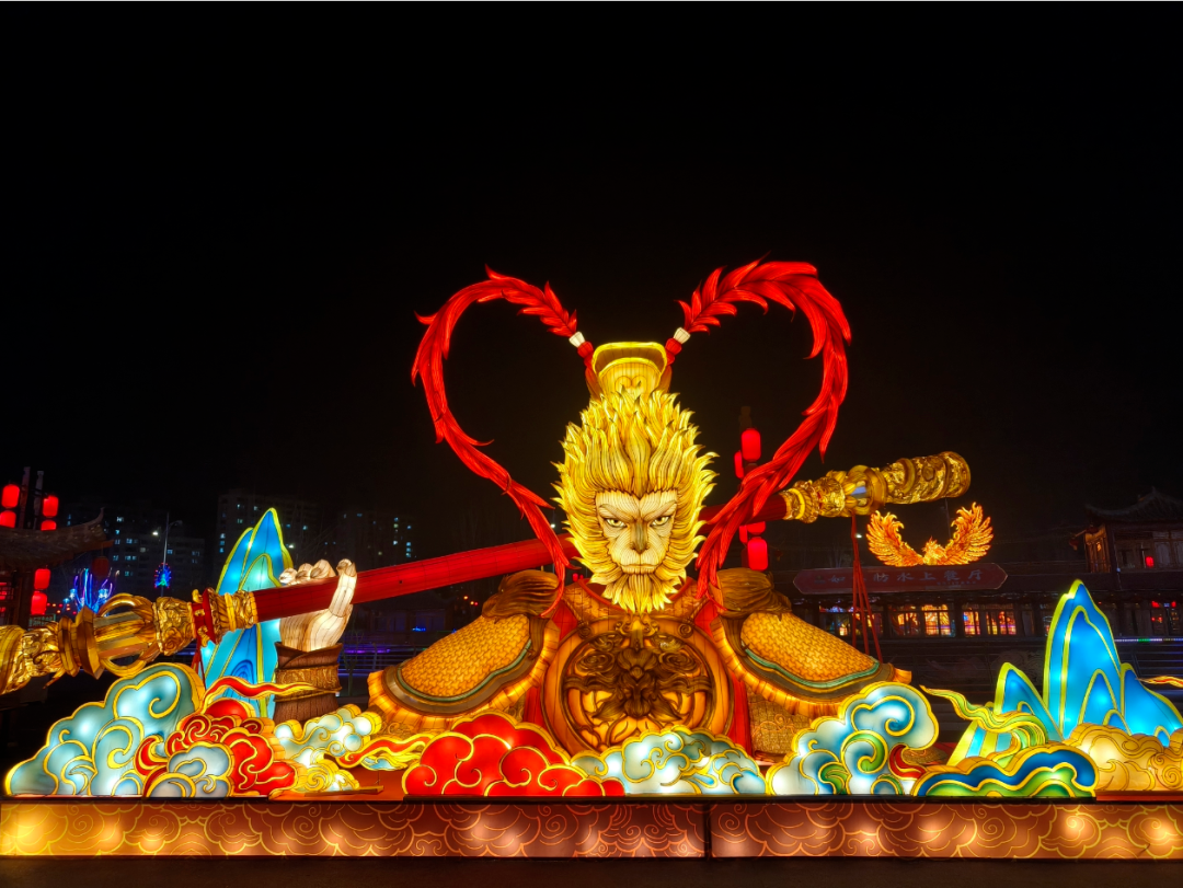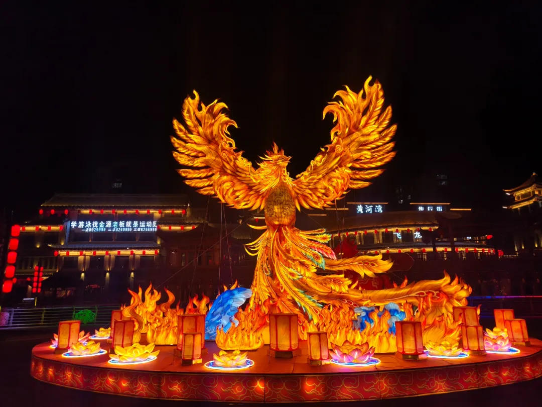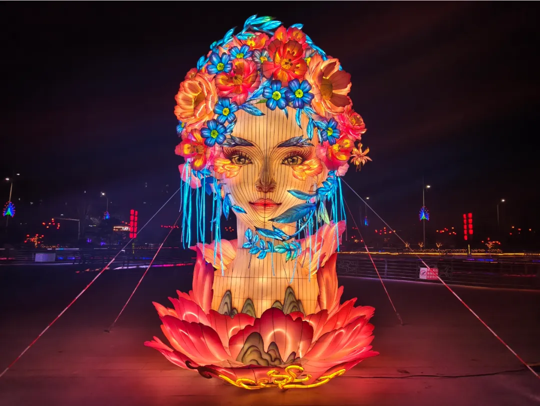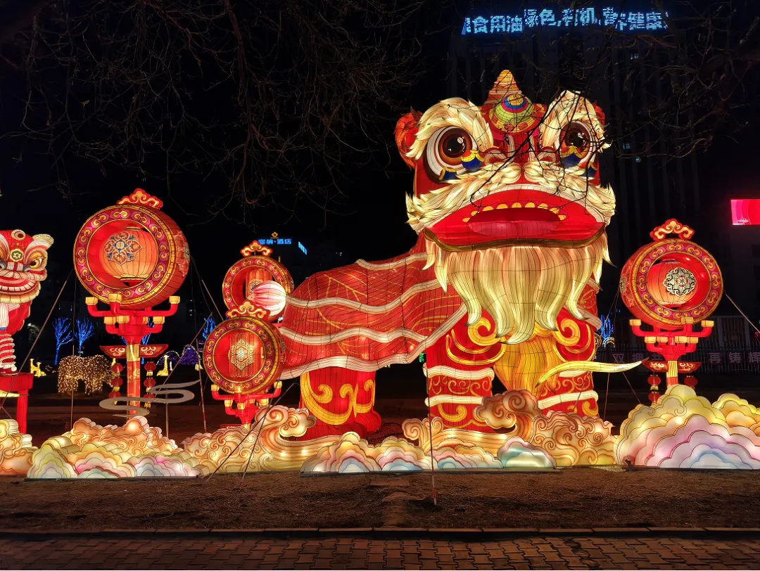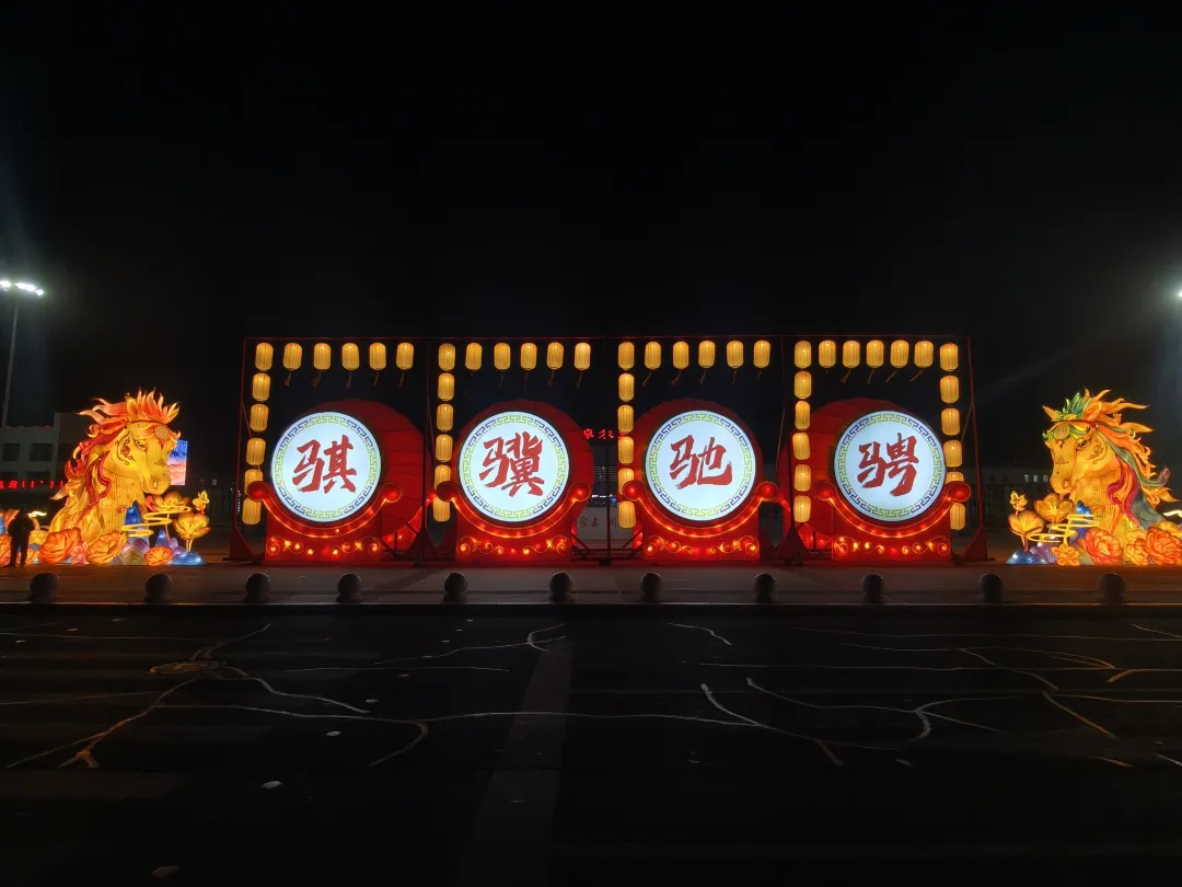 与此同时,13组大型主题灯组全部亮灯。高铁站北广场的“瑞灯贺春”以红金为主色调,传递团圆喜乐;百合园内“狮启福运”与“新春纳福”灯组动静结合,狮跃龙腾,寓意吉祥兴旺;黄河湾步行街沿线,“骏启鸿财”“十二生肖”“百花仙子”等灯组依次展开,融民俗文化与现代灯艺于一体,展现出一幅“马上迎福、百花报春”的生动图景。市政府南广场的“花开富贵”巨型花篮灯组,以百花簇拥之姿呼应“中华民族一家亲,同心共筑中国梦”的美好愿景;区政府广场的“五谷丰登”灯组则通过丰收意象,传递出踏实暖心的幸福感。据悉,此次亮化工程共采用节能灯具36类、2.5万余盏(件),兼顾环保性与艺术性。