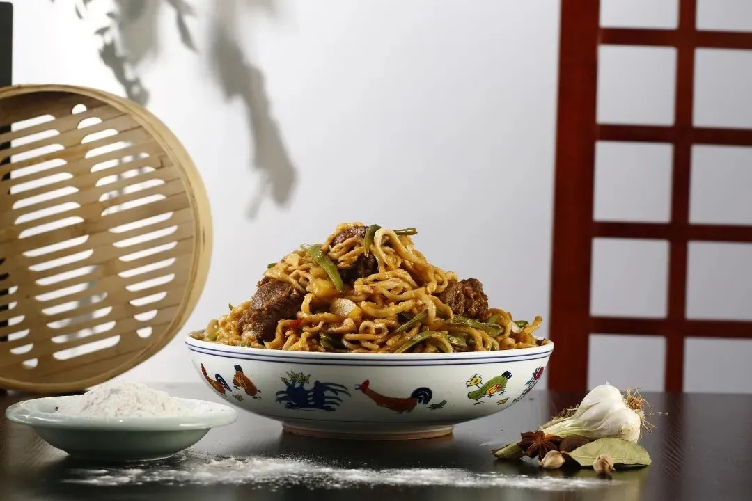 “中午扛扛硬硬一碗铁锅焖面”足以看出巴彦淖尔人对它的喜爱,餐桌上一年四季都能见到焖面的身影。焖面的花样有很多,配菜也很普通,用排骨豆角或猪肉芹菜、干豆角排骨、排骨酸菜焖煮最佳,香而不腻,回味无穷。