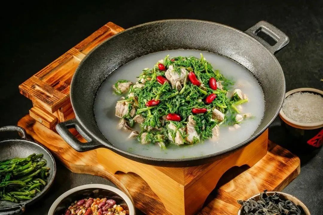 此道菜品选取阿尔山当地的野菜柳蒿芽与阿尔山林区改良的二代猪排炖煮,汤色奶白,鲜香微涩,荤素搭配,养肝健胃,清热解毒,每一口都是难忘的兴安味道。
