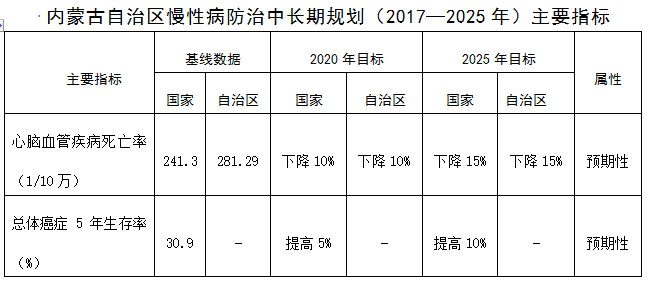 为进一步加强我区慢性病防治工作,加快推进健康内蒙古建设,有效降低疾病负担,提高居民健康期望寿命,切实保障人民身体健康,根据《国务院办公厅关于印发中国防治慢性病中长期规划(2017—2025年)的通知》(国办发〔2017〕12号)精神,结合我区慢性病防治工作实际,制定本规划。