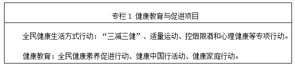 2.深入推进全民健康素养促进行动,以创建健康促进旗县为抓手,大力普及健康科学知识,教育引导人民群众树立正确的健康观;持续开展健康家庭行动等行动,提升健康教育效果,提升居民健康素质。到2020年和2025年,居民健康素养水平分别达到20%和25%,重点慢性病核心知识知晓率分别达到60%和70%。