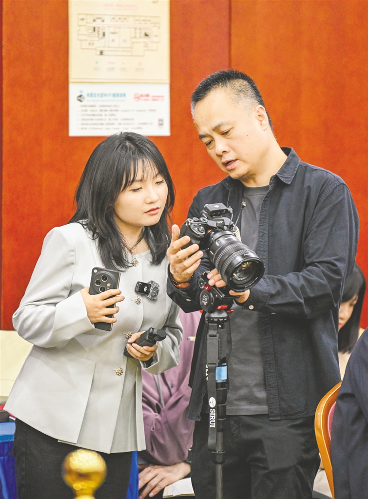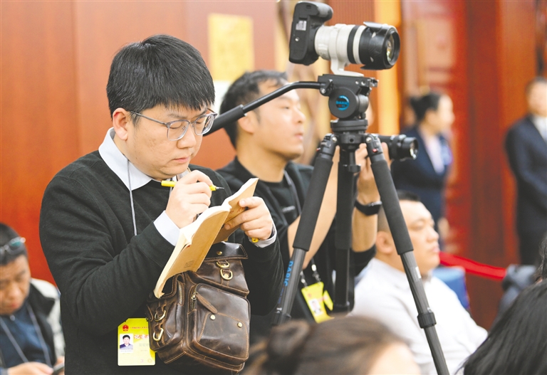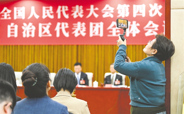 记者用手机录制代表发言。本报记者 马建兵 摄