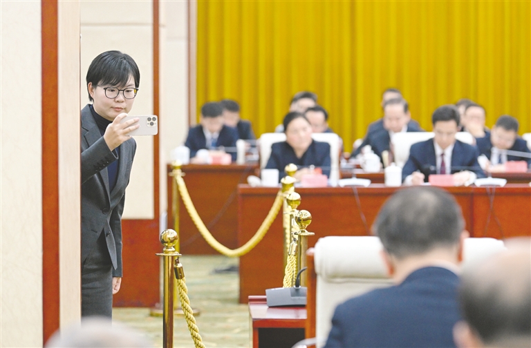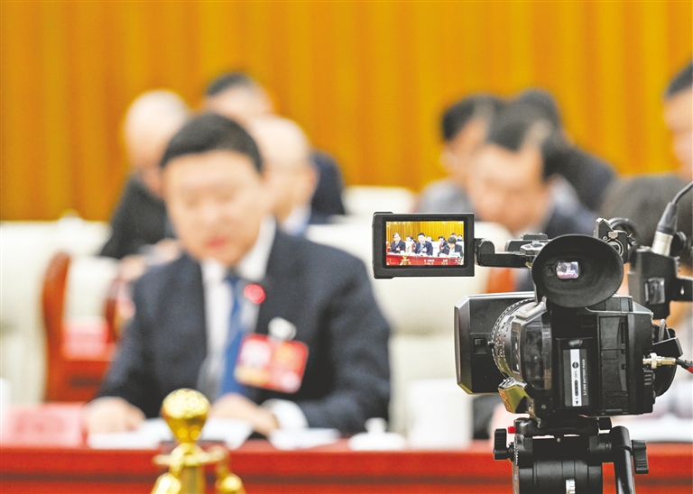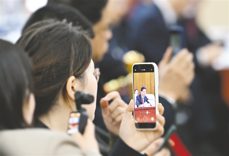 记者用手机录制代表发言。本报记者 马建兵 摄