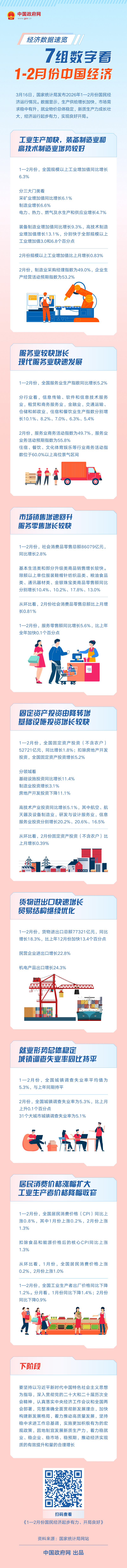 经济数据速览:7组数字看1—2月份中国经济
