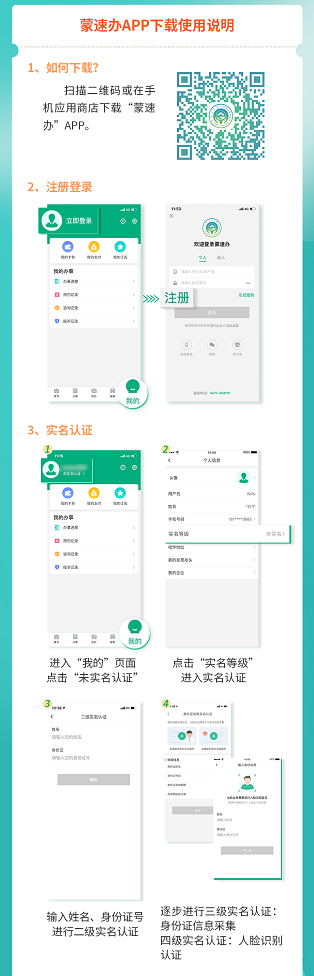 “蒙速办·掌上办”作为内蒙古自治区政务服务数字化转型的重要实践成果,是指由自治区政府统筹规划,盟市、旗县共建共用的移动政务服务平台(简称“蒙速办”APP),包含移动端应用及小程序。推动“蒙速办·掌上办”工作旨在为广大群众和企业办事提供“一站式”掌上查询、掌上预约、掌上办理、掌上评价的在线政务服务。同时,“蒙速办”APP还提供多项便民服务,让群众足不出户尽享生活便利。企业群众可通过下载“蒙速办”APP或者登录微信、支付宝小程序,按照不同的政务服务事项(包括行政权力和公共服务),提供24小时“掌上”政务服务,大大减轻到窗口“跑腿”办事的负担。