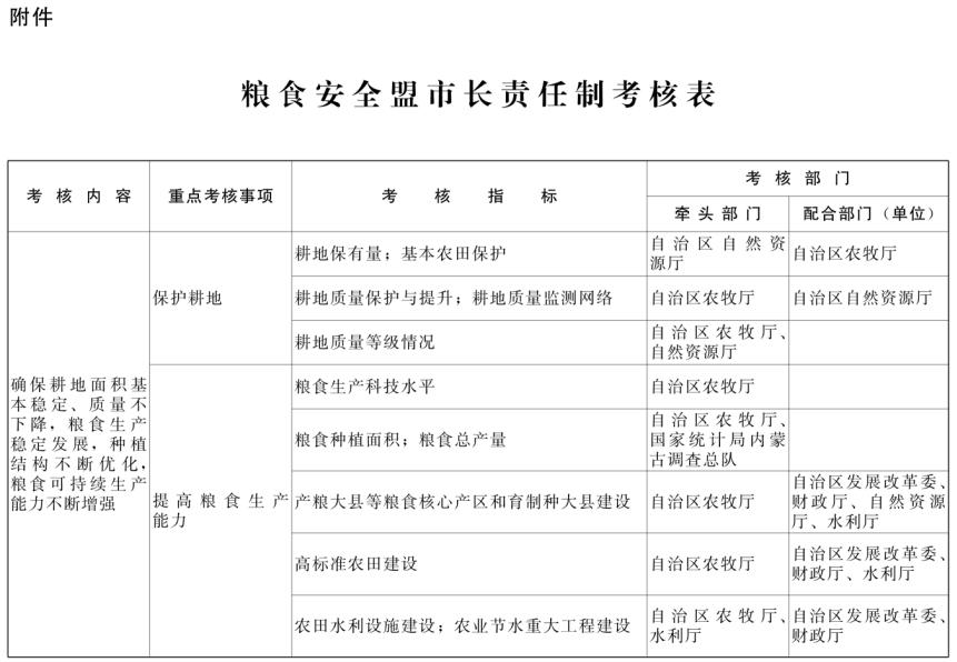 内蒙古自治区粮食安全盟市长责任制考核办法