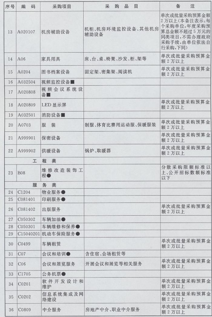 根据《中华人民共和国政府采购法》、《中华人民共和国政府采购法实施条例》和财政部《政府采购品目分类表》、《ld体育中国官方网站关于深入贯彻落实〈中华人民共和国政府采购法实施条例〉的意见》(内政发〔2015〕113号)的有关规定和要求,经自治区人民政府同意,现将《2016年至2017年盟市级政府采购集中采购目录、限额标准和公开招标数额标准》予以公布,并提出以下要求,请认真贯彻执行。
