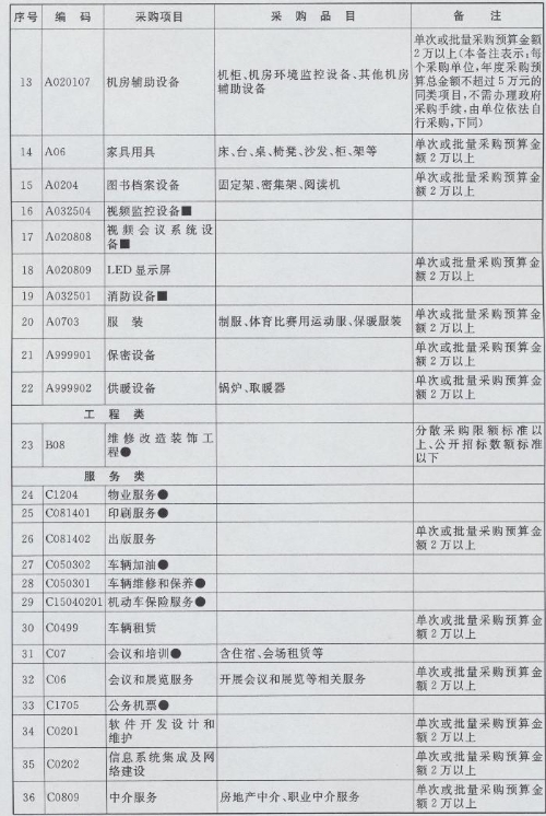 集中采购目录中,加“★”的采购品目,原则上应实行批量集中采购;加“■”的采购品目,原则上应实行协议供货;加“●”的采购品目,原则上应实行定点采购。关于批量集中采购、协议供货和定点采购的实施时间及具体规定,由各盟市结合实际,自行确定。