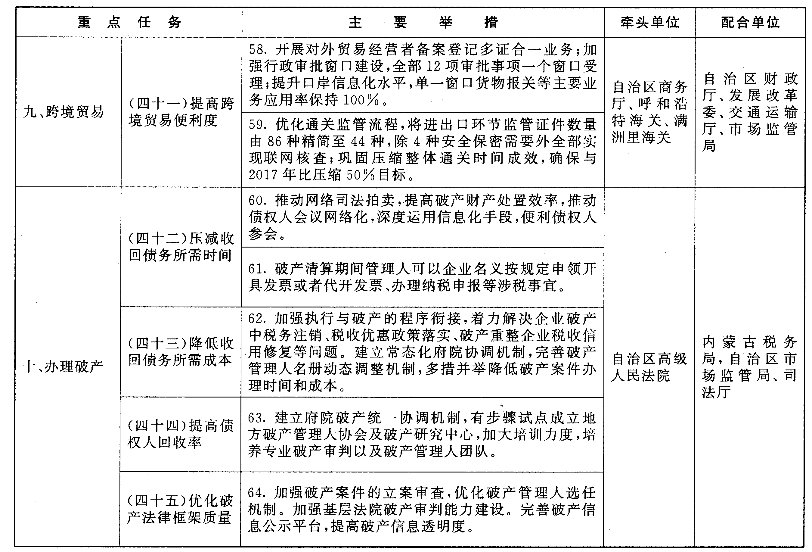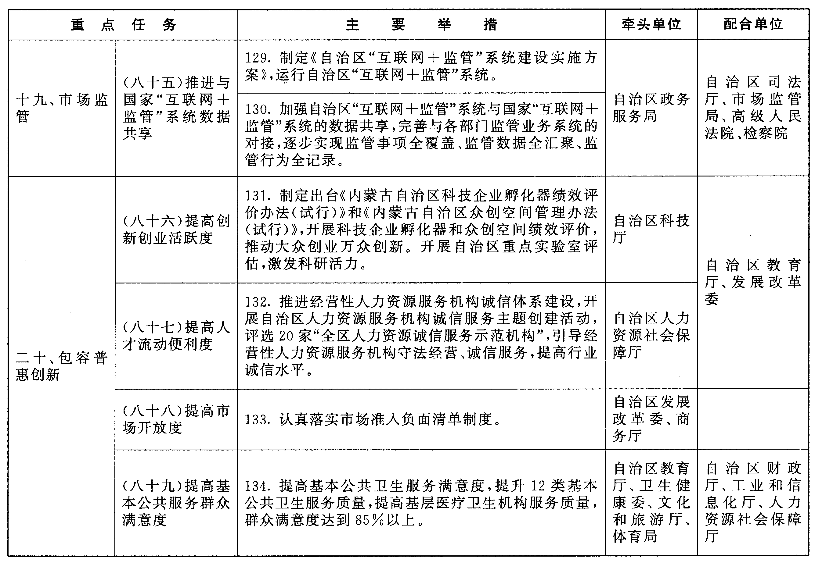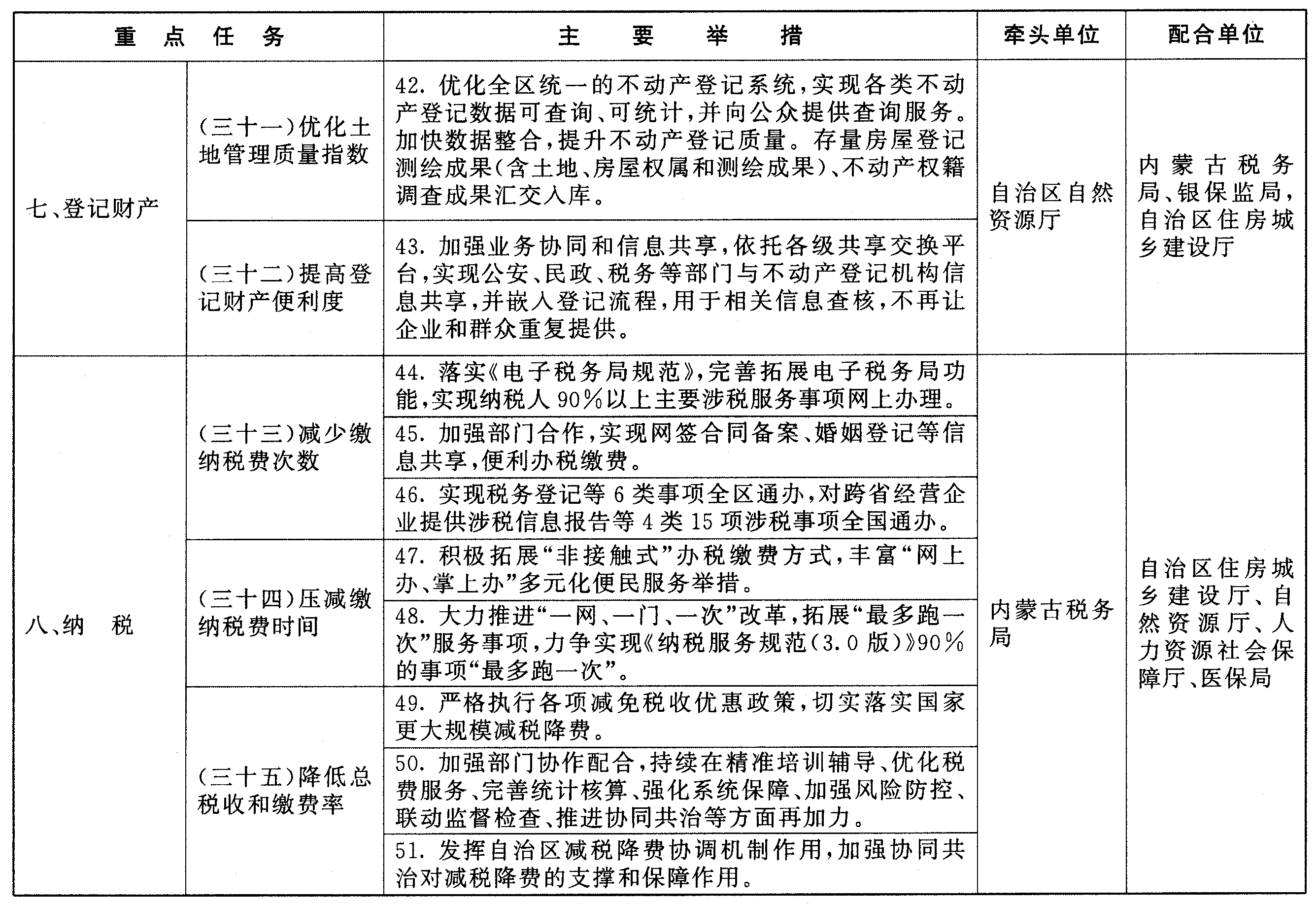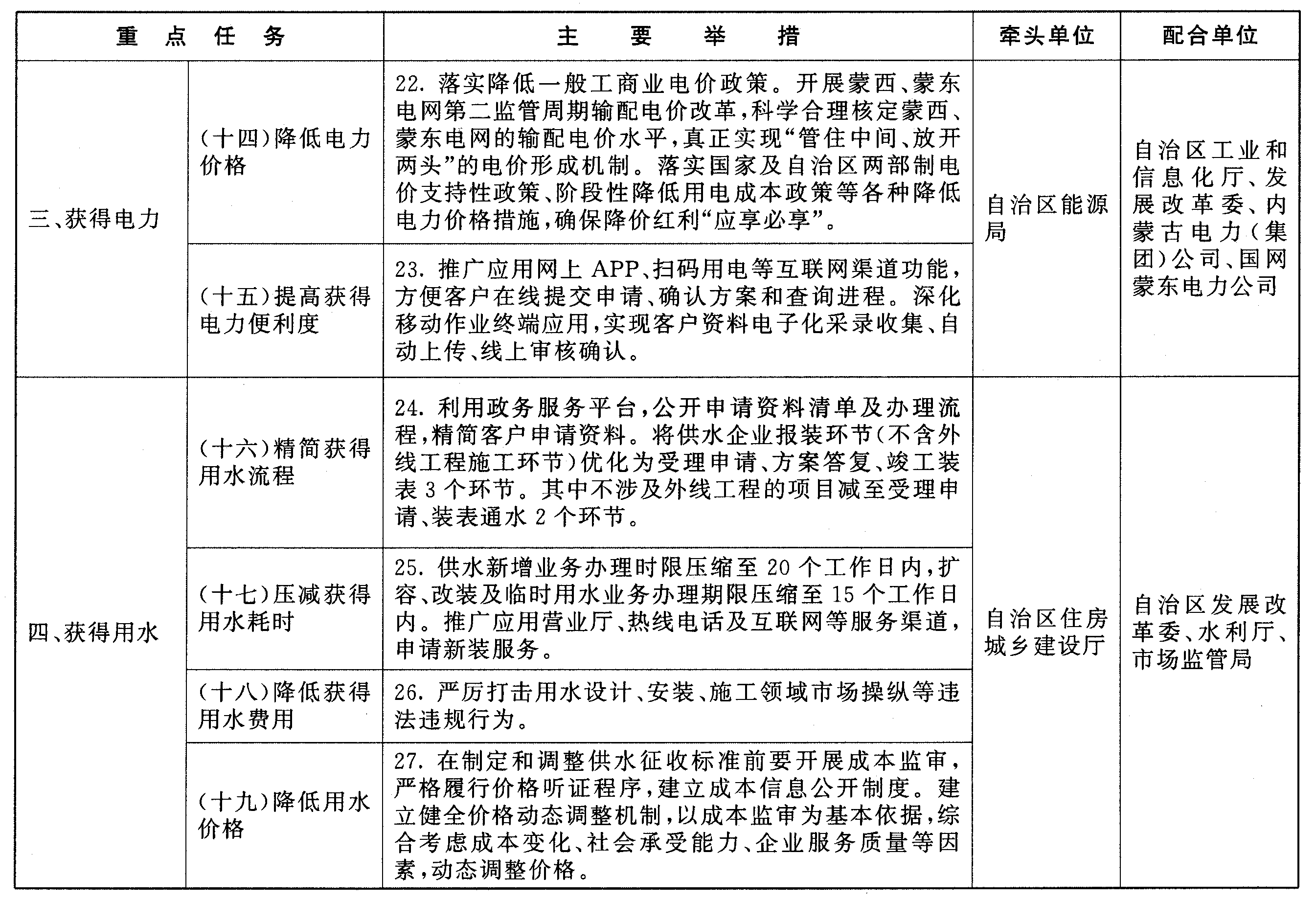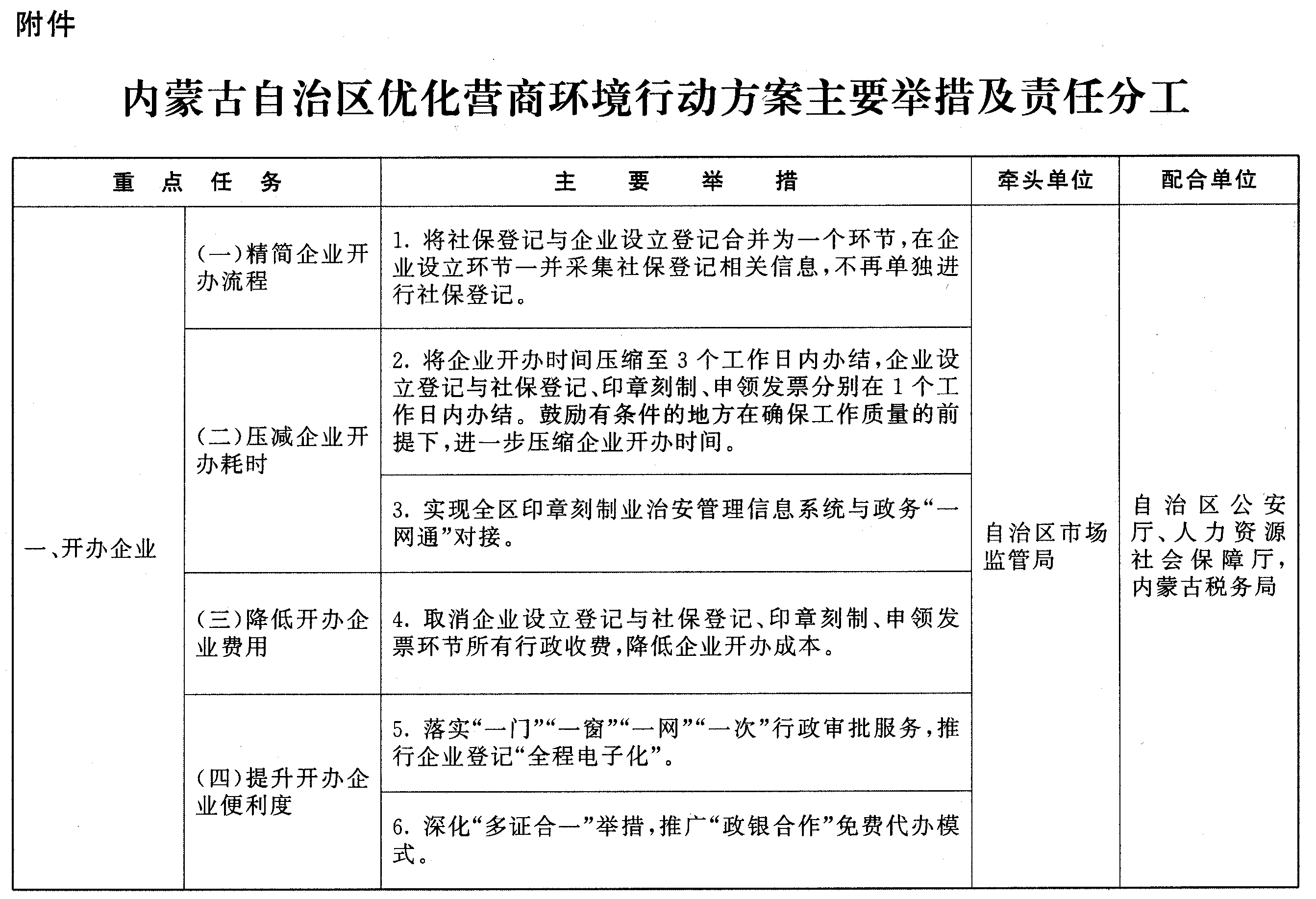 附件:内蒙古自治区优化营商环境行动方案主要举措及责任分工