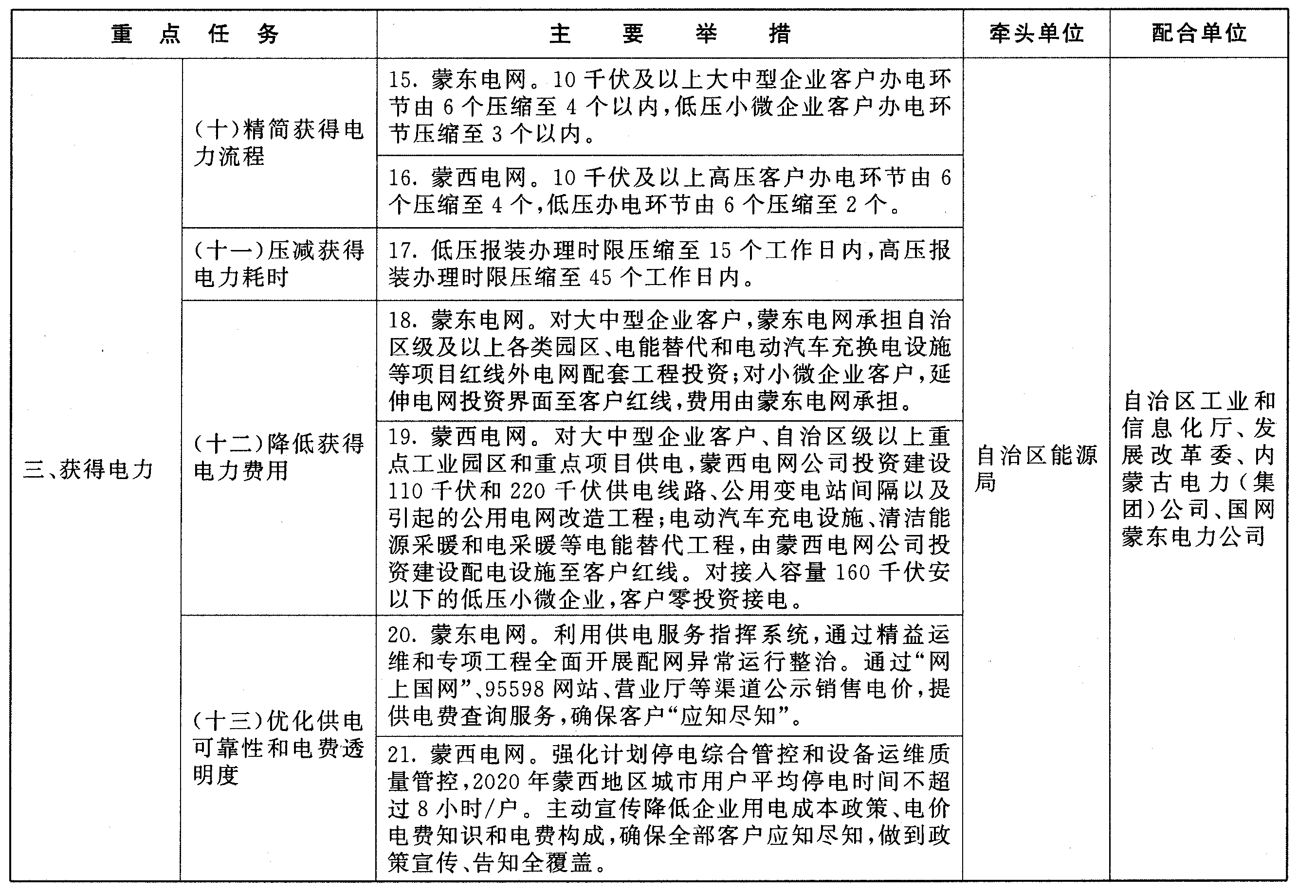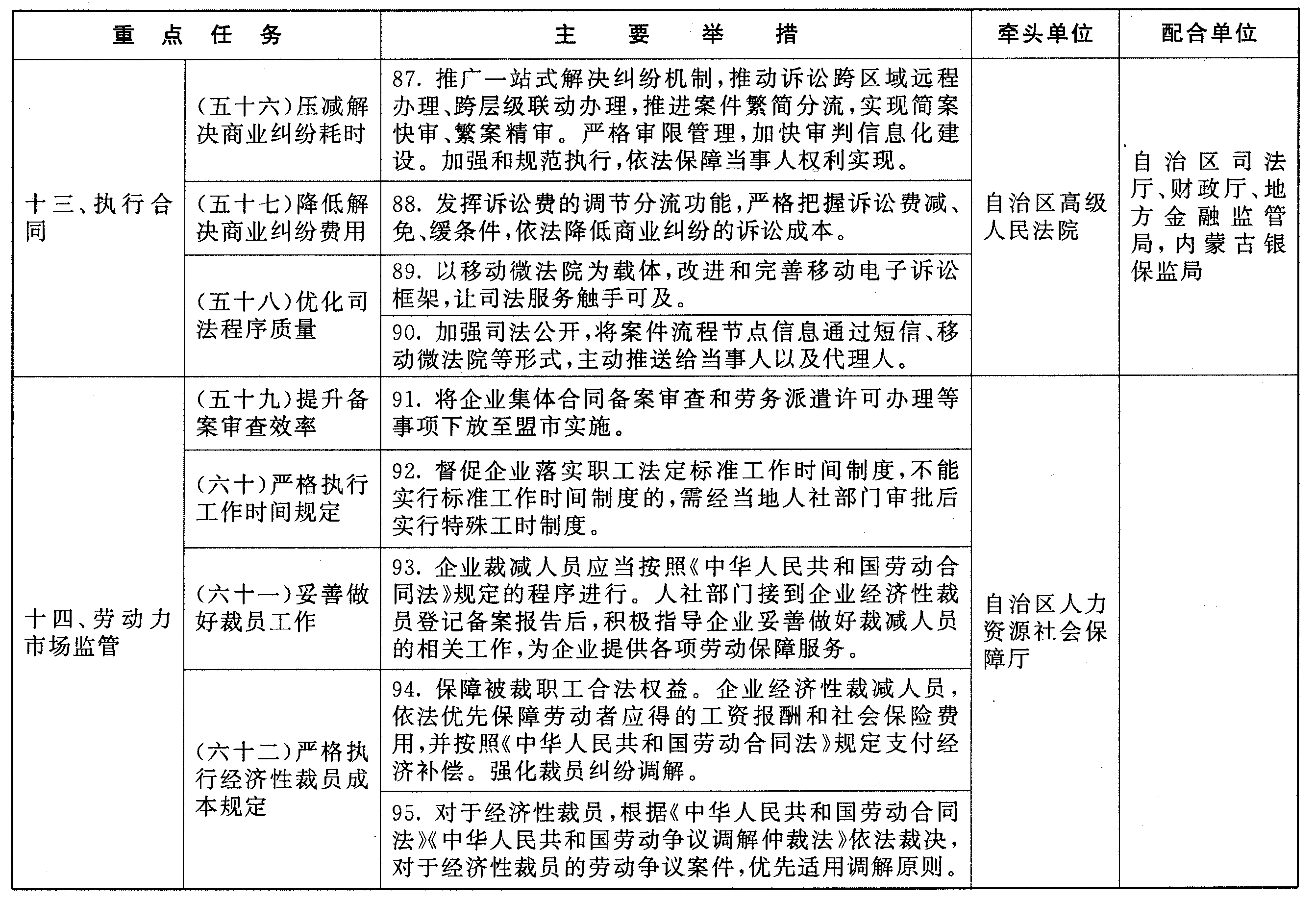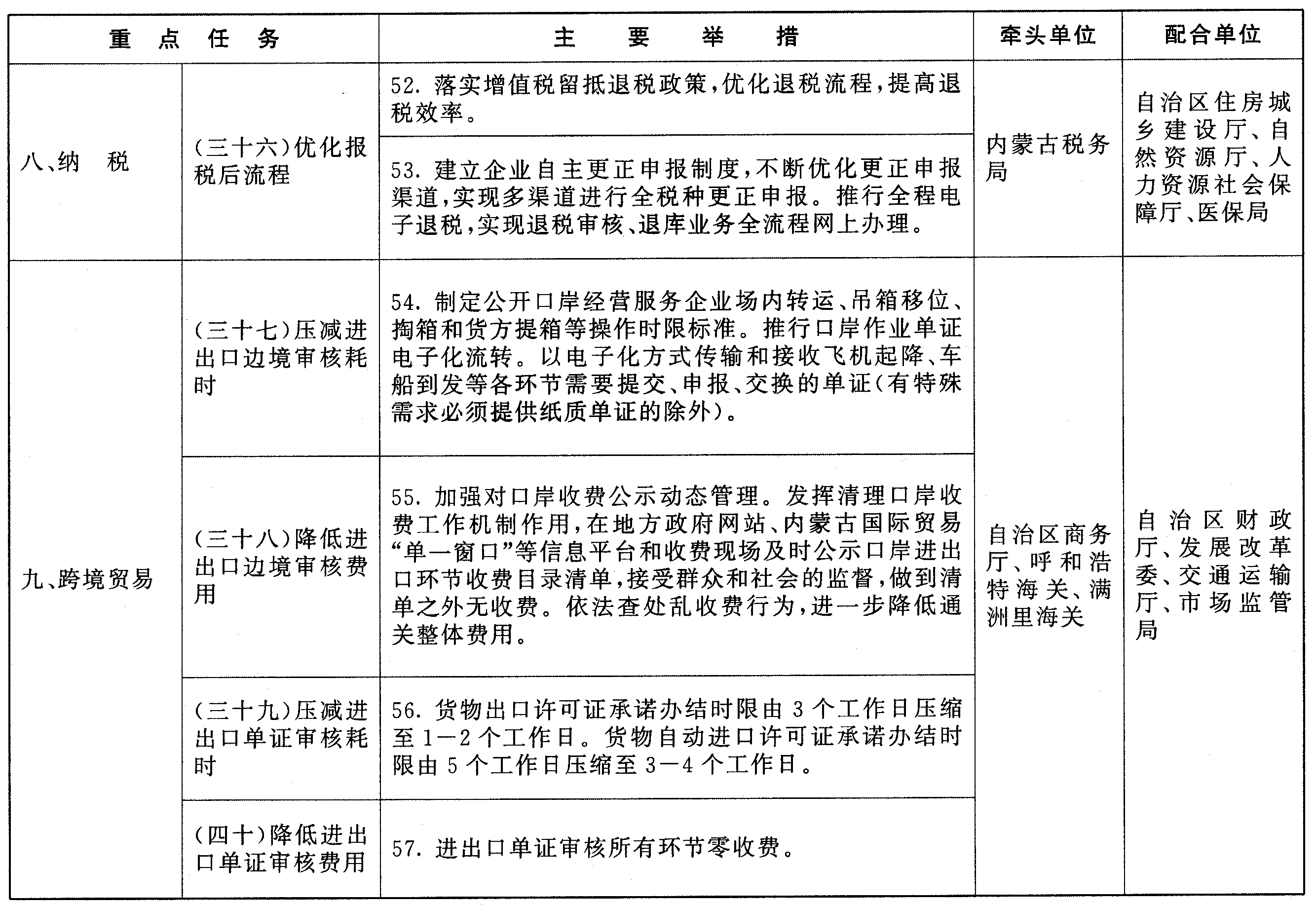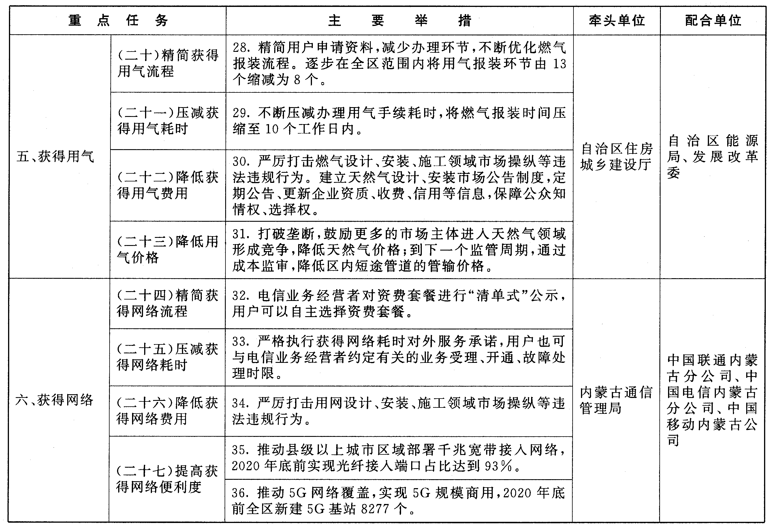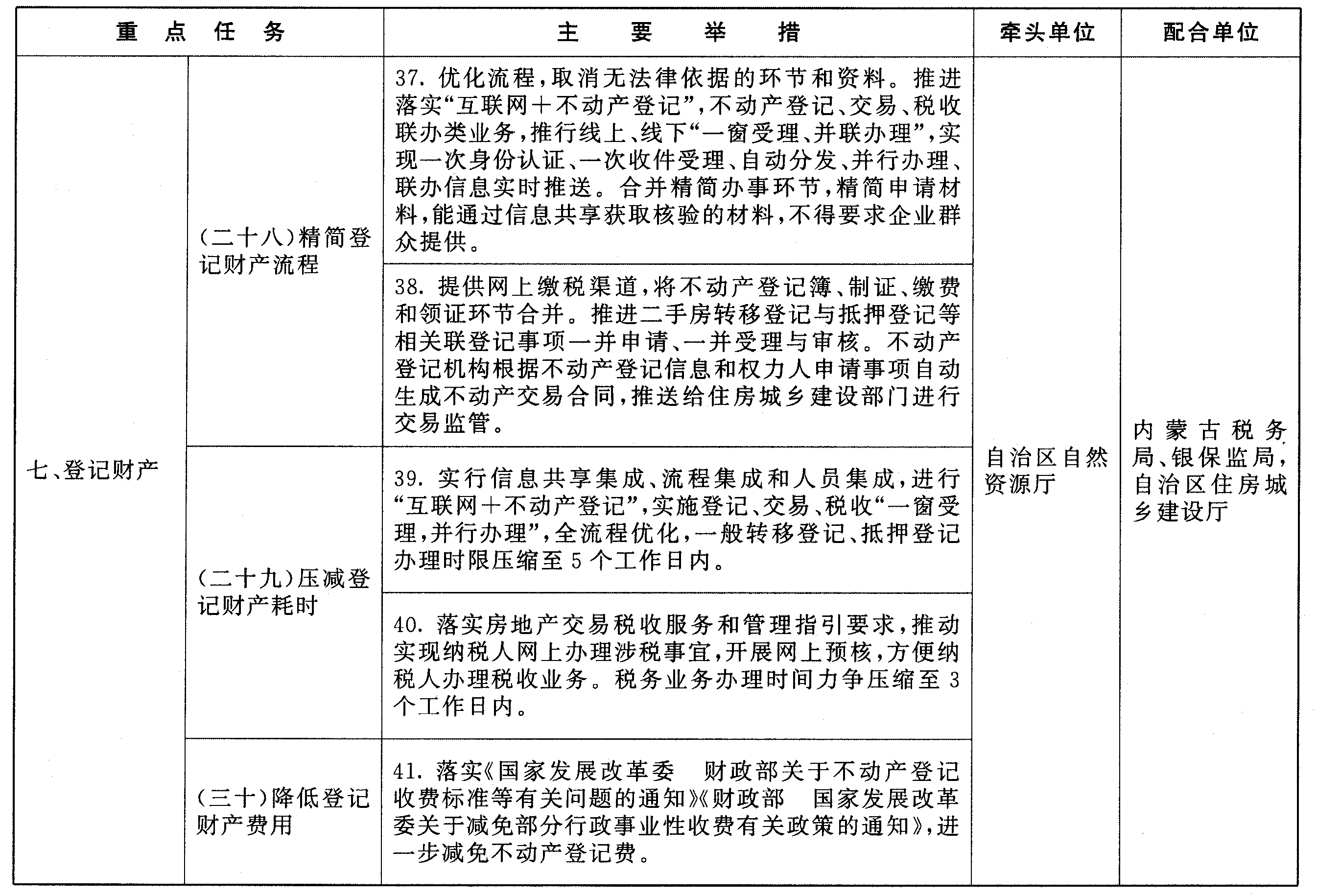 附件:内蒙古自治区优化营商环境行动方案主要举措及责任分工