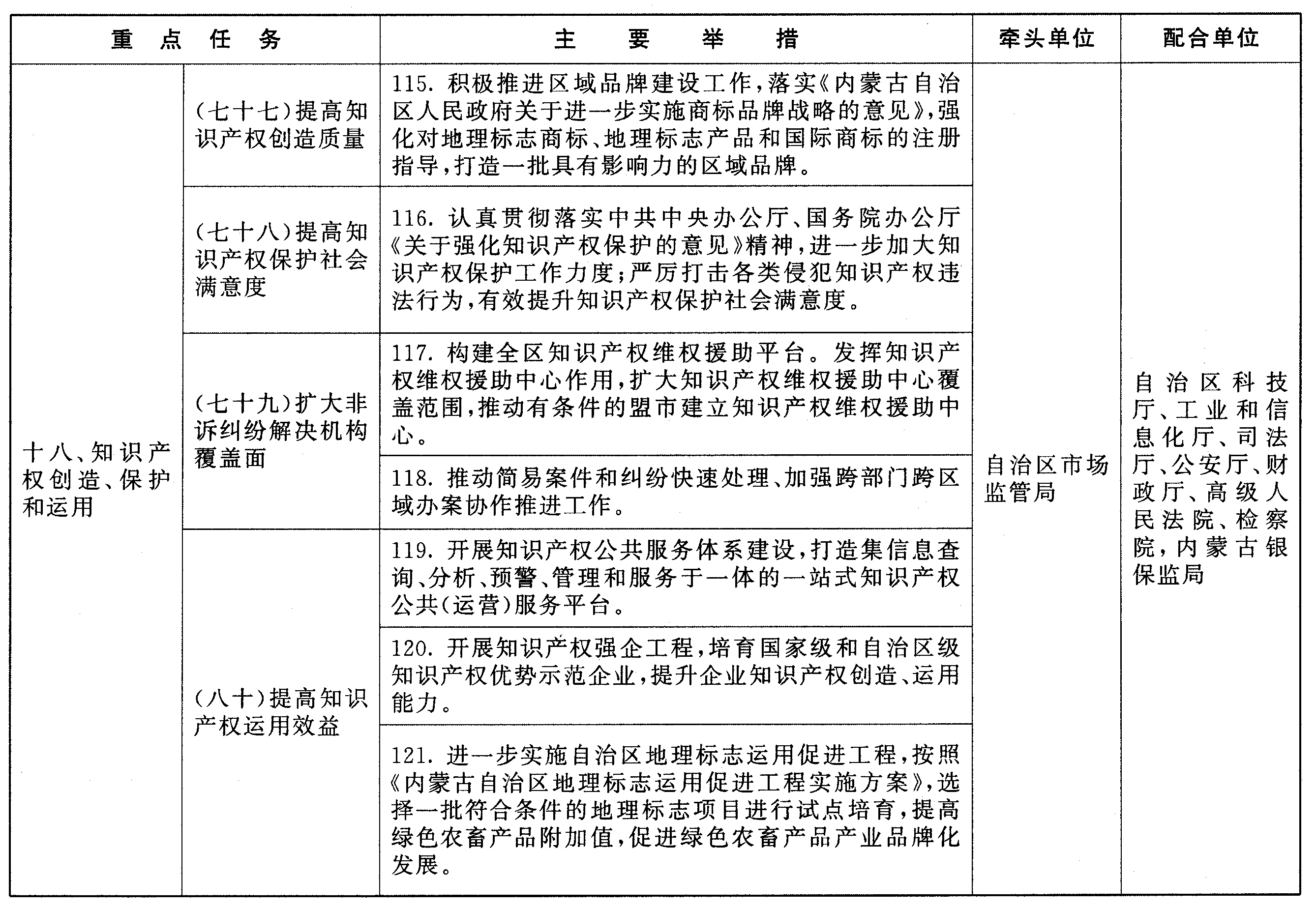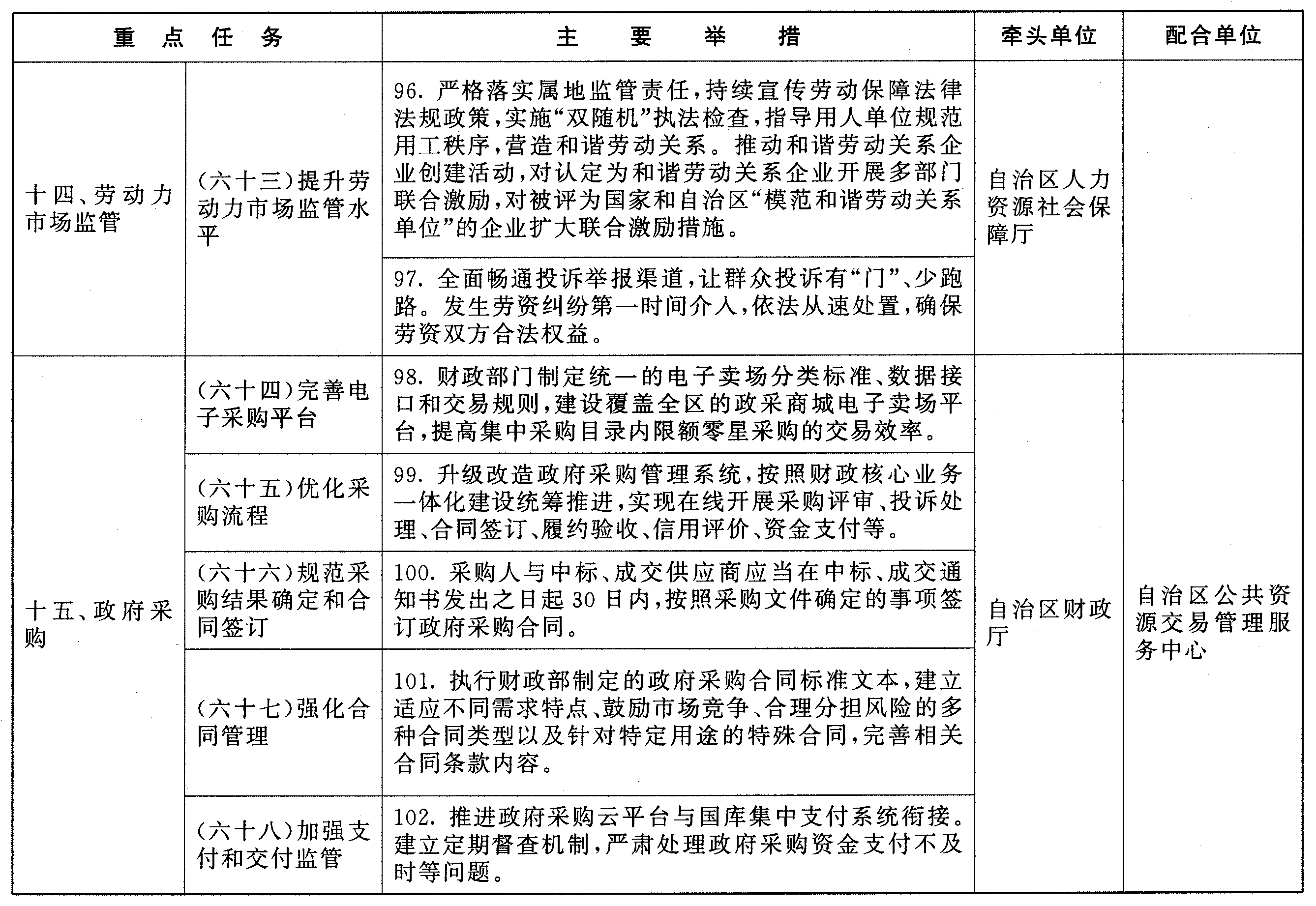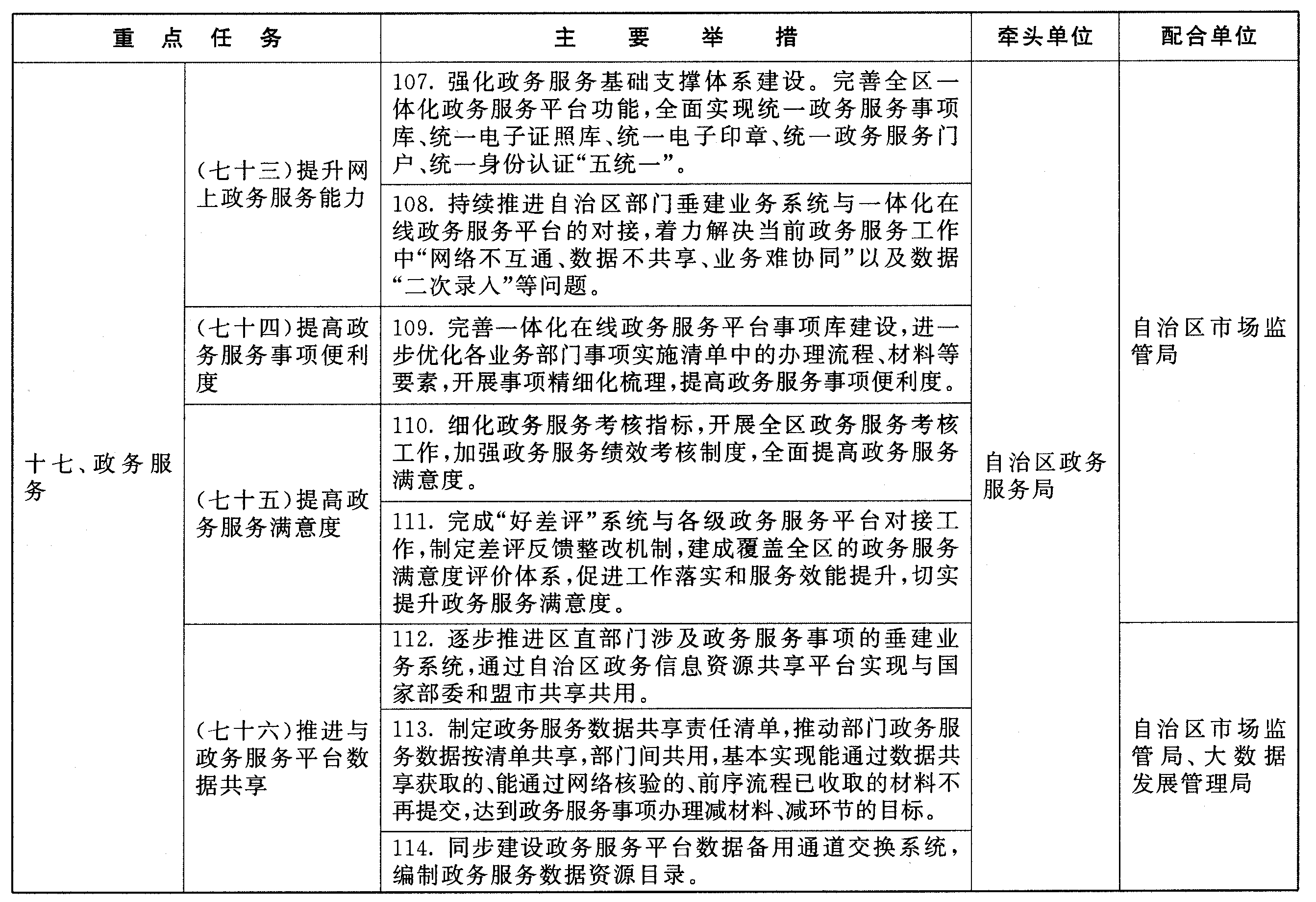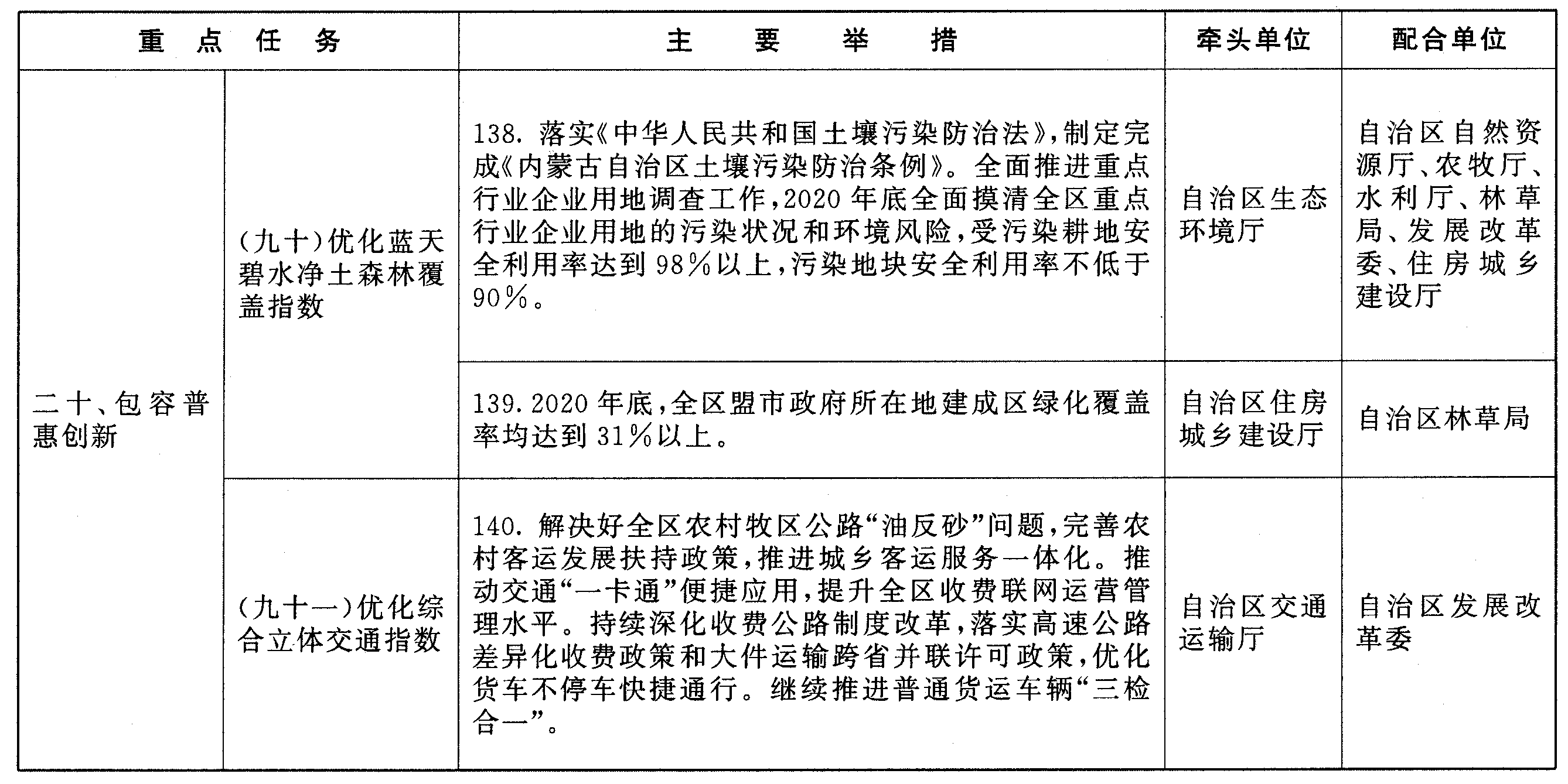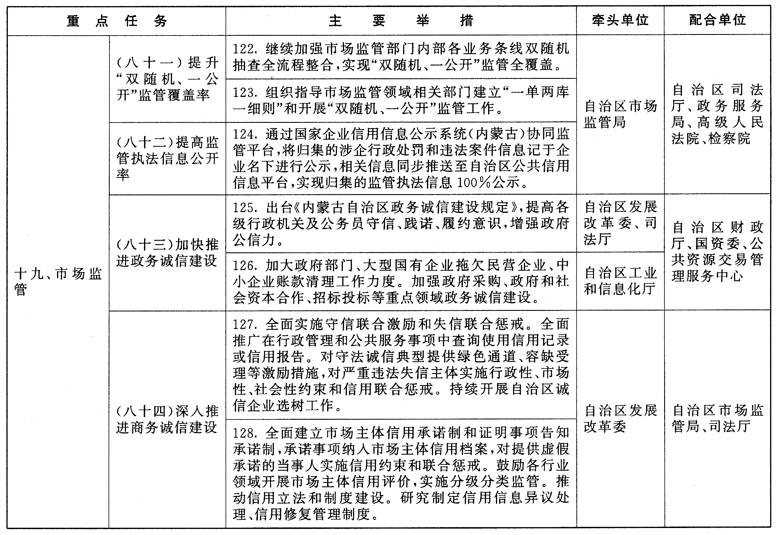 附件:内蒙古自治区优化营商环境行动方案主要举措及责任分工