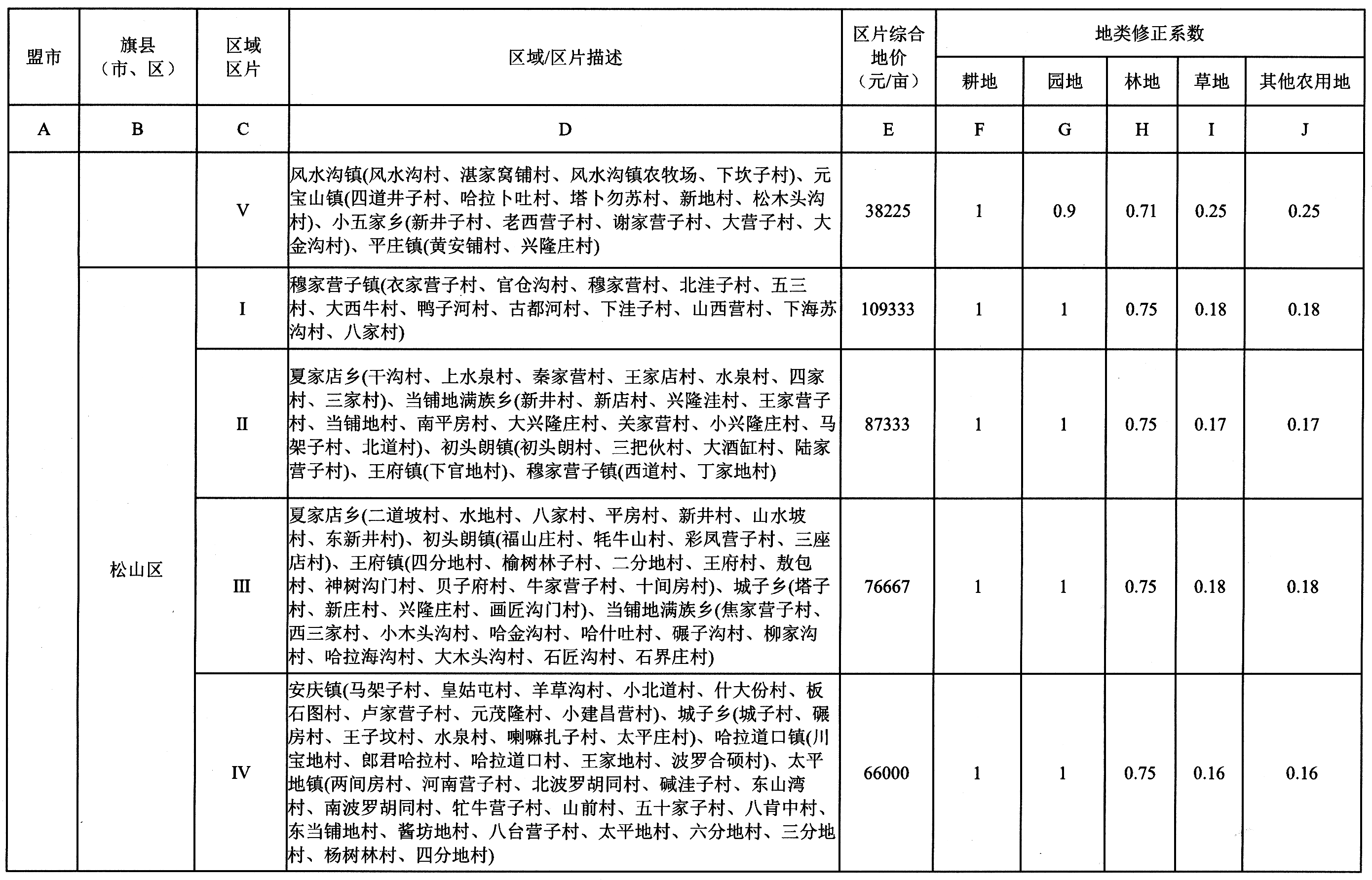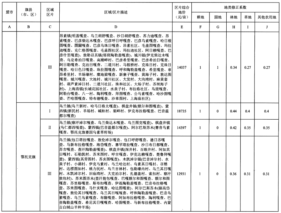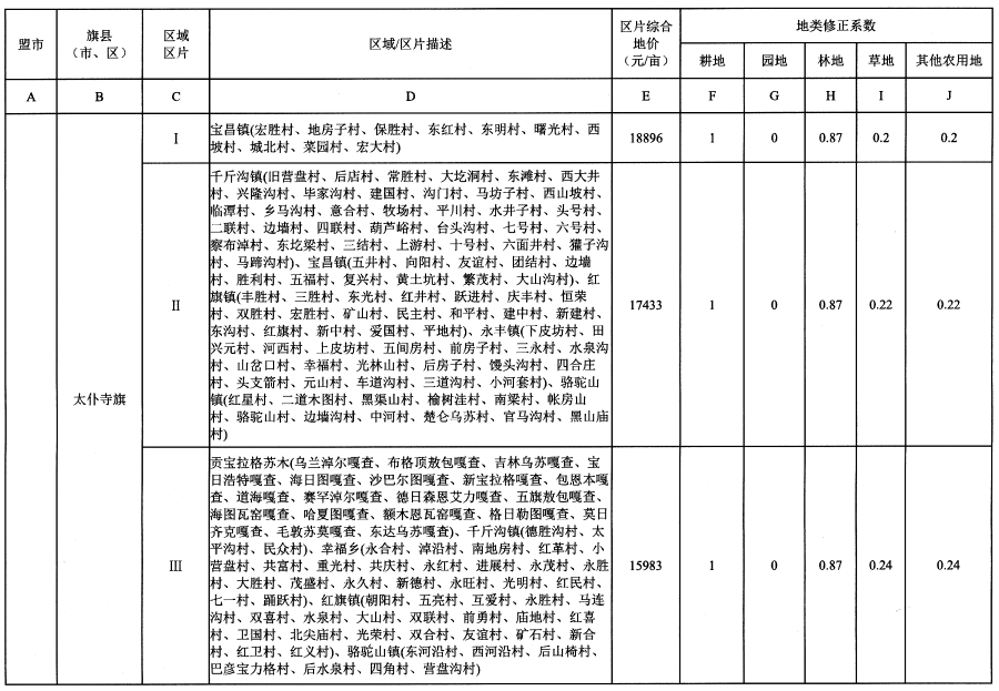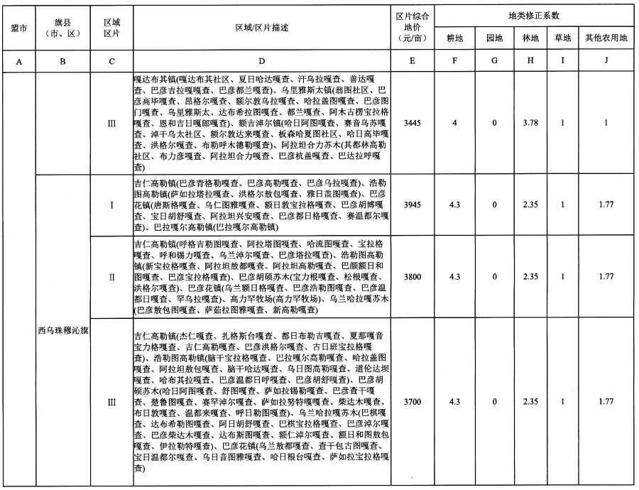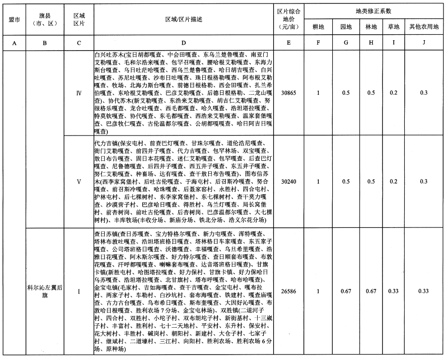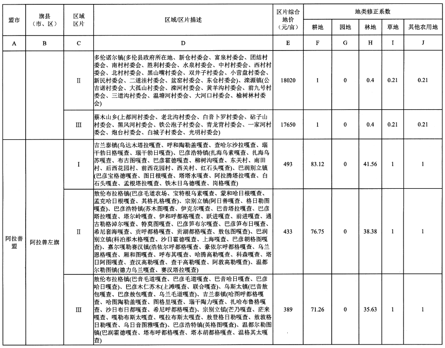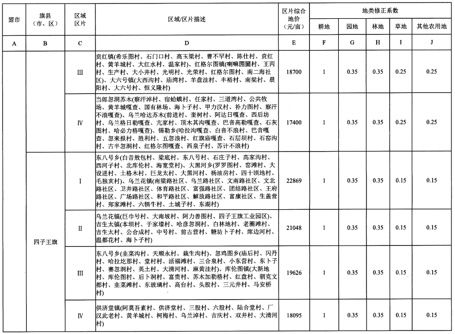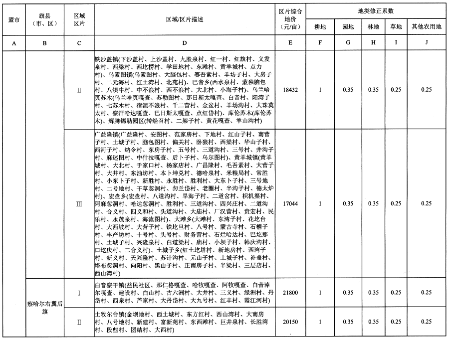 此次公布中未明确具体区片的苏木乡镇或者嘎查村组,征地补偿标准按该苏木乡镇所属旗县(市、区)或者该嘎查村组所属苏木乡镇的最高补偿标准执行。征收涉及永久基本农田的,按照所属旗县(市、区)最高标准补偿执行。
