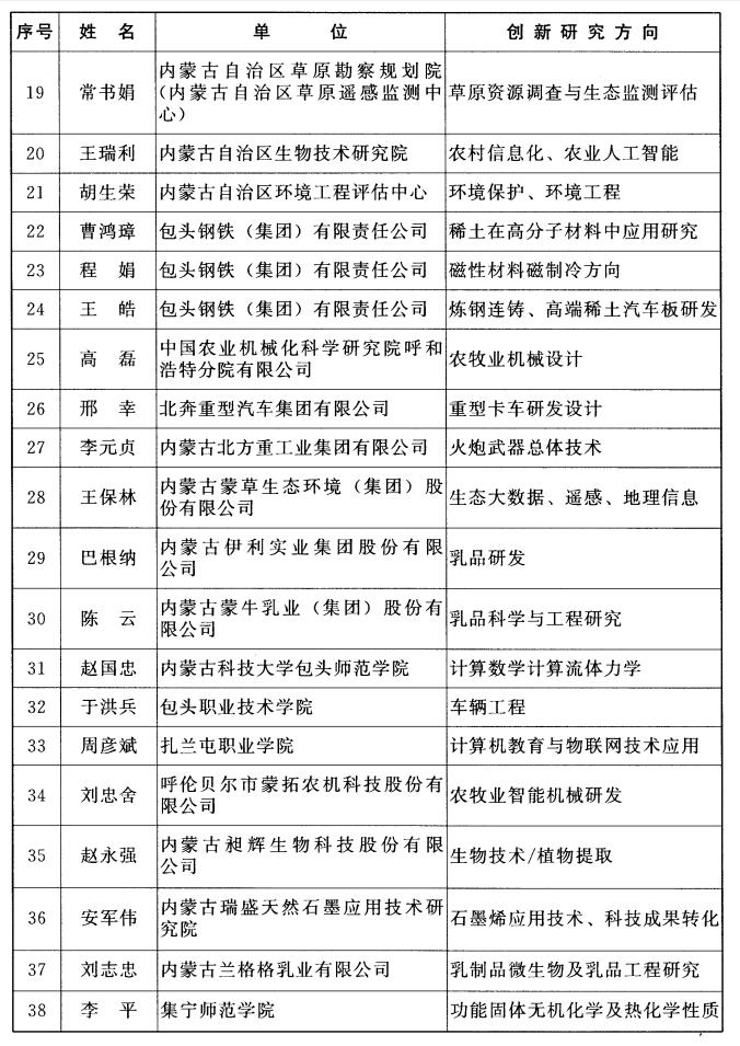 附件:2020年内蒙古自治区青年创新人才奖表彰人员名单