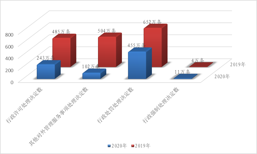 此外,2019年自治区政府行政权力压减工作成效开始显现,行政许可、行政处罚、行政强制决定数量明显下降,2020年公开行政许可、其他对外管理服务事项结果信息340余万条,同比下降65%;公开行政处罚、行政强制结果信息460余万条,同比下降31%。