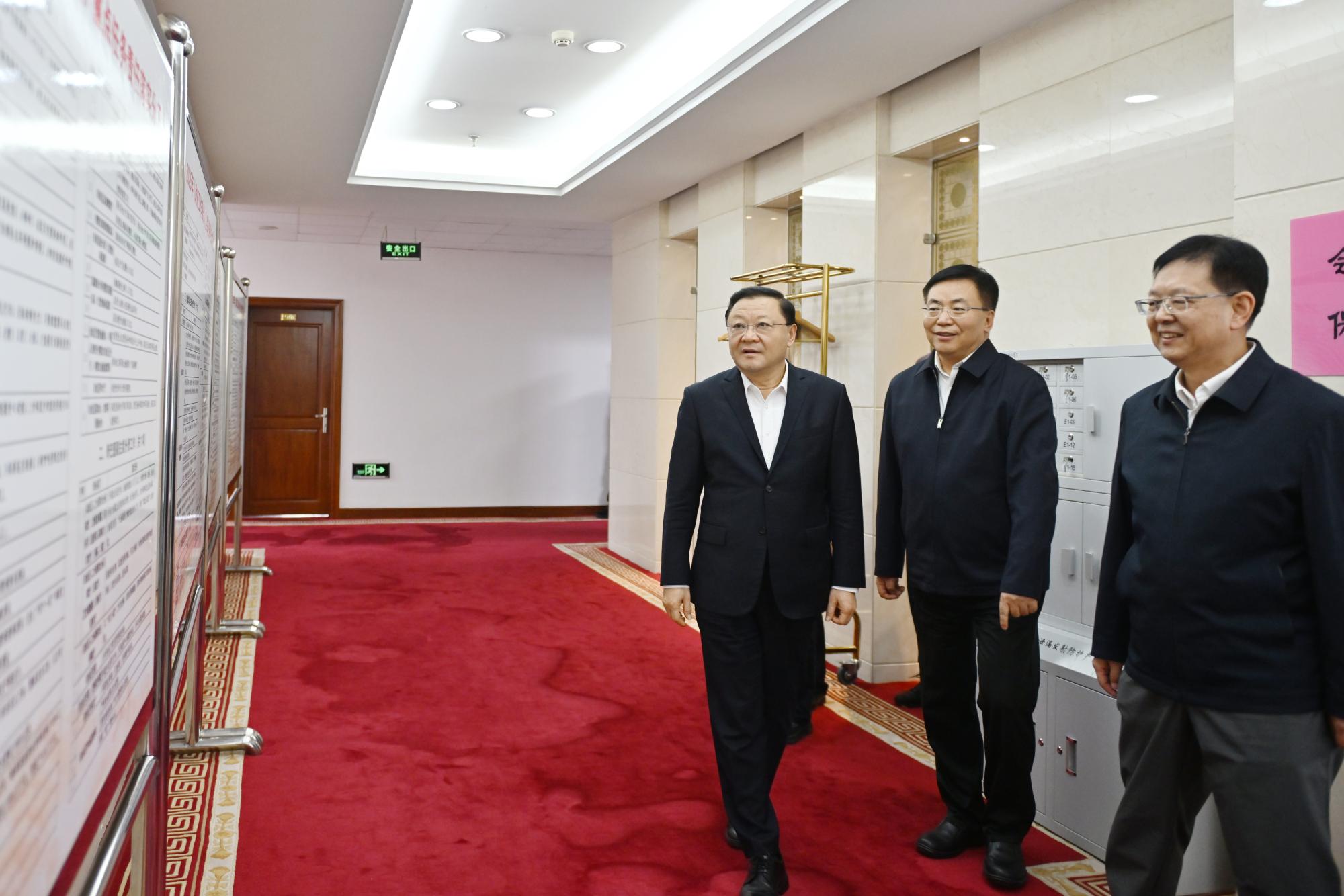 10月10日下午,自治区党委书记王伟中来到自治区人大常委会机关,认真听取工作汇报,并走进人大代表接待室,详细了解人大代表工作及代表履职平台运行情况。草原云·内蒙古新闻网记者马建兵 摄