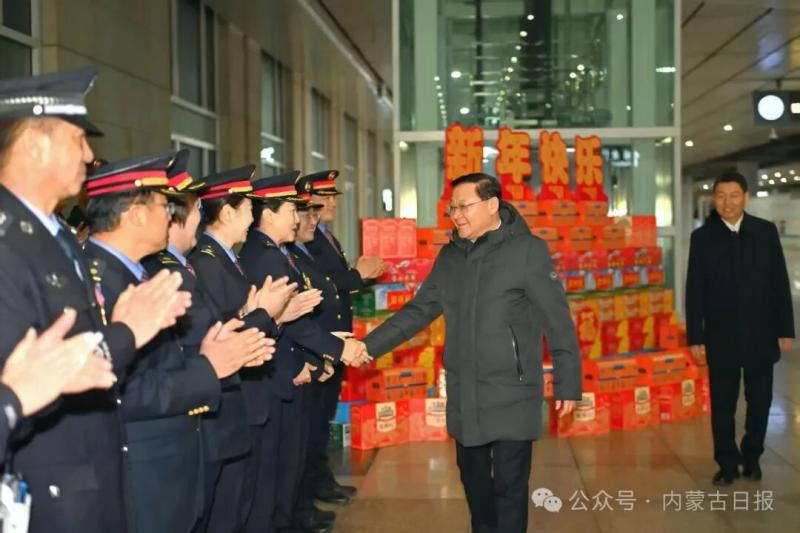 春节将至,首府的街头张灯结彩,处处洋溢着喜庆祥和的节日氛围。王伟中一行首先来到赛罕区一中队交警执勤岗点,亲切慰问正在执勤的民警,送上新春美好祝福,感谢大家的默默坚守和无私付出。王伟中叮嘱大家注意防寒保暖,以良好状态守护城市平安畅通。在万正广场环卫站,王伟中一行看望慰问辛勤工作的环卫工人。王伟中说,你们是城市的“美容师”,每天起早贪黑、风雨无阻,用辛勤劳动换来了城市的清洁美丽,大家辛苦了。有关部门要多关心他们的工作和生活,细化关爱举措,健全保障机制,在全社会营造尊重环卫工人、珍爱生活环境的良好氛围。随后,王伟中一行来到呼和浩特火车东站,仔细询问春运期间人流车流、安全保障等情况。王伟中强调要精准把握春节群众出行规律,加强运力调配、客流疏导和秩序维护,深入排查整治安全隐患,切实提升服务质量,让群众出行更安全、更舒心。