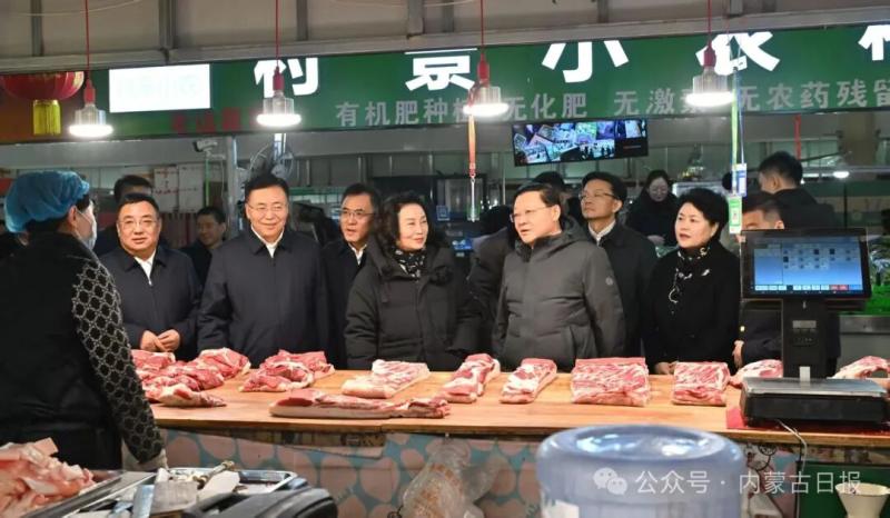 赛罕区宝全农贸市场车水马龙、年味十足,王伟中一行来到综合交易大厅,与市场管理方、商户、市民亲切交流,了解商品产地、存储、价格、运销等情况。王伟中说,民以食为天,食以安为先,食品安全是天大的事。要加强节日期间食品安全全链条监管,坚决落实“四个最严”要求,努力守好从田间到餐桌的每一道防线。要强化市场保供稳价,做好米面粮油肉蛋奶果蔬等生活必需品的供应保障,组织好各类促消费活动,更好满足群众节日消费需求。