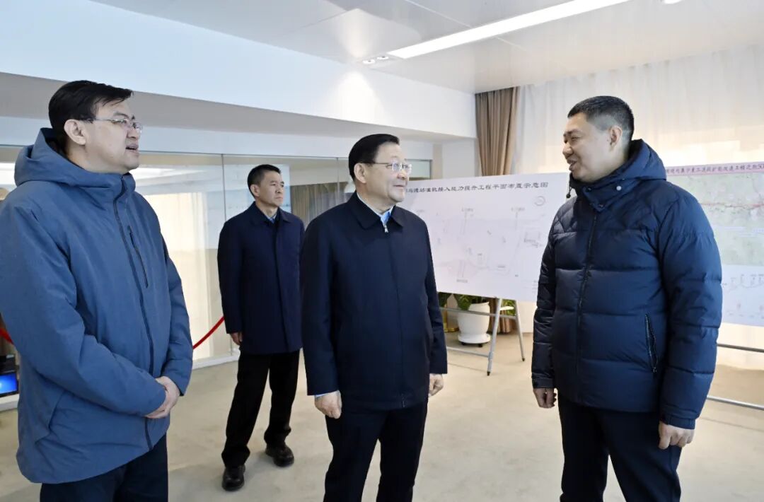 3月21日,自治区党委书记、人大常委会主任王伟中来到车站指挥调度中心,认真听取口岸建设管理、中欧班列运行等情况介绍。草原云·内蒙古新闻网记者 马建兵 摄