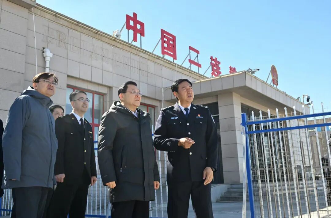 王伟中首先来到二连浩特市,走进铁路车站指挥调度中心、中蒙二连浩特——扎门乌德经济合作区、公路旅检口岸、边民互市贸易区、二连浩特国门,认真听取口岸建设管理、中欧班列运行、对外开放、边境管控等情况介绍。他说,要积极服务和融入国家开放战略,以智慧口岸建设为抓手提升通关效率和服务水平,充分发挥各类开放平台在促进国内国际双循环中的重要作用。要大力发展边贸物流、跨境电商、落地加工等产业,构建通道带物流、物流带经贸、经贸带产业发展格局,着力解决中欧班列“酒肉穿肠过”问题,推动“经济通道”向“通道经济”转变。