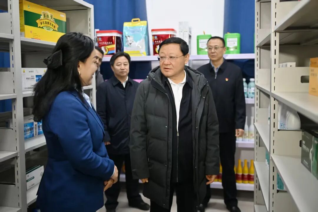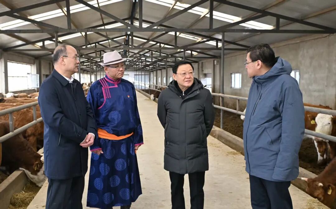 3月23日,自治区党委书记、人大常委会主任王伟中在阿巴嘎旗伊克塞畜牧服务有限公司调研兽医机构社会化服务情况。草原云·内蒙古新闻网记者 马建兵 摄