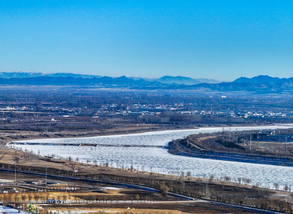图为大黑河与远处的大青山。大黑河接纳了十多条大大小小的支流,在奔赴母亲河的途中裹挟着泥沙,携带着黑色的腐殖质和泥土,河道内“墨流独浼浼”,河岸边冲积成平坦的良田,积淀出土地肥沃的古敕勒川。新华社记者连振摄